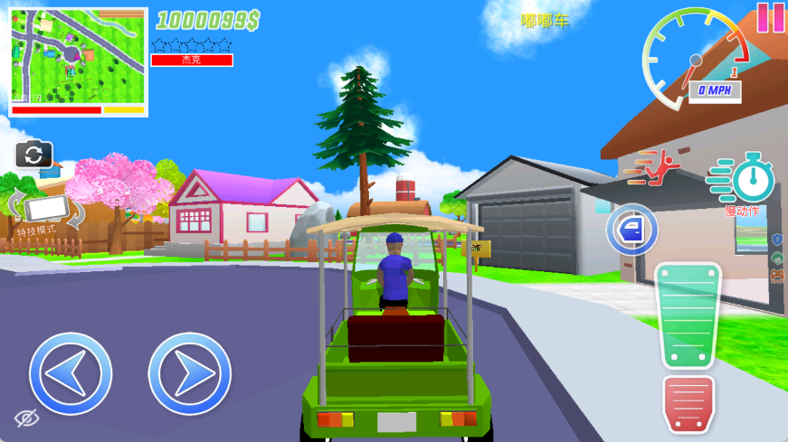 4、玩法自由度相当的高,在道路上我们可以找到各种车辆,靠近车辆就有上车按钮,点击就可以上车开始驾驶了。