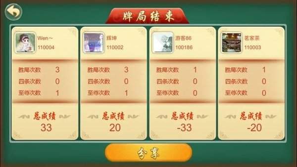 (3)5红7武8白:起手有5红、7武、8白,可以起手选择打全或继续,若选择打全,牌局直接结束,其他三家每人输20分。